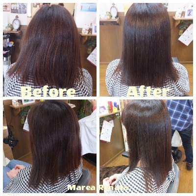 マレーア・レナータ・縮毛矯正ご覧いただきありがとうございます♪(ビフォアー)根元にくせが出てきてまとまりにくく髪が広がりボリュームが気になる(アフター)スッキリ手触りが良くなり艶艶しっとり(≧∇≦)サ...